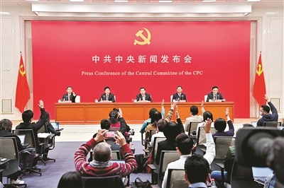 11月12日,中共中央在北京举行新闻发布会,中央宣传部分管日常工作的副部长王晓晖,中央政策研究室主任江金权,中央财经委员会办公室分管日常工作的副主任韩文秀,中央党史和文献研究院院长曲青山介绍党的十九届六中全会精神,并答记者问。发布会由中央宣传部副部长、国务院新闻办公室主任徐麟主持。