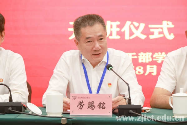开班仪式上,党委书记劳赐铭作动员讲话。劳赐铭从要提高政治站位,明确“为什么学”;要准确把握学习内容,明确“学什么”;要聚焦事业发展,明确“怎么学”等三个方面,强调本次会议是学校改革发展、争先进位,干部队伍统一思想、开拓创新的迫切需要,指出学习宣传贯彻好党的二十届三中全会精神是当前和今后一个时期的首要政治任务,全体与会人员要在学习中提高,在提高中实践,始终保持爬坡过坎的压力感,保持奋勇向前的使命感,保持干事创业的责任感,用拼劲、韧劲、干劲为学校做业绩、出新绩、赢实绩。陕西延安干部学院枣园分院院长白世程致辞并作开班仪式入学教育讲话。